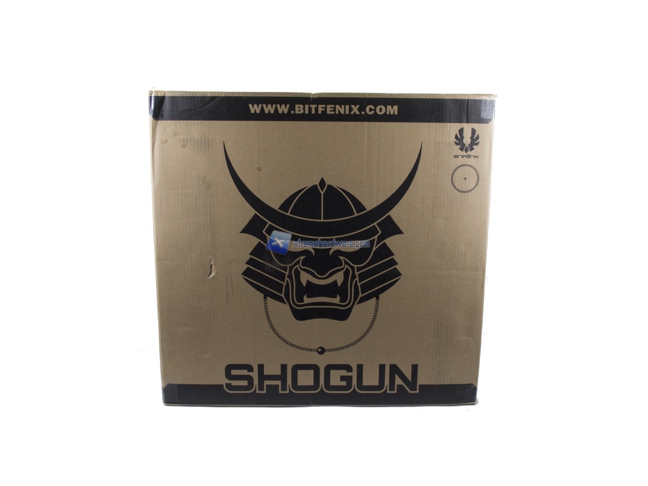 Il BitFenix Shogun ci verrà consegnato in una classica confezione di cartone riciclato sulla quale è riportata frontalmente il volto di uno Shogun mentre posteriormente le principali caratteristiche e dettagli. Ulteriori informazioni sono presenti ai lati. La confezione è, vista la tipologia di case, di generose dimensioni e peso.