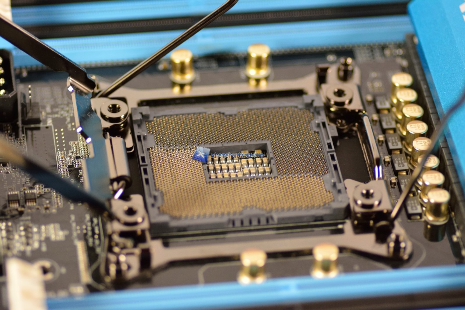 Il socket LGA2011v3 è di produzione Foxconn ed è di un color brunito lucido. Il sistema di chiusura è lo stesso utilizzato dalla precedente serie X79.