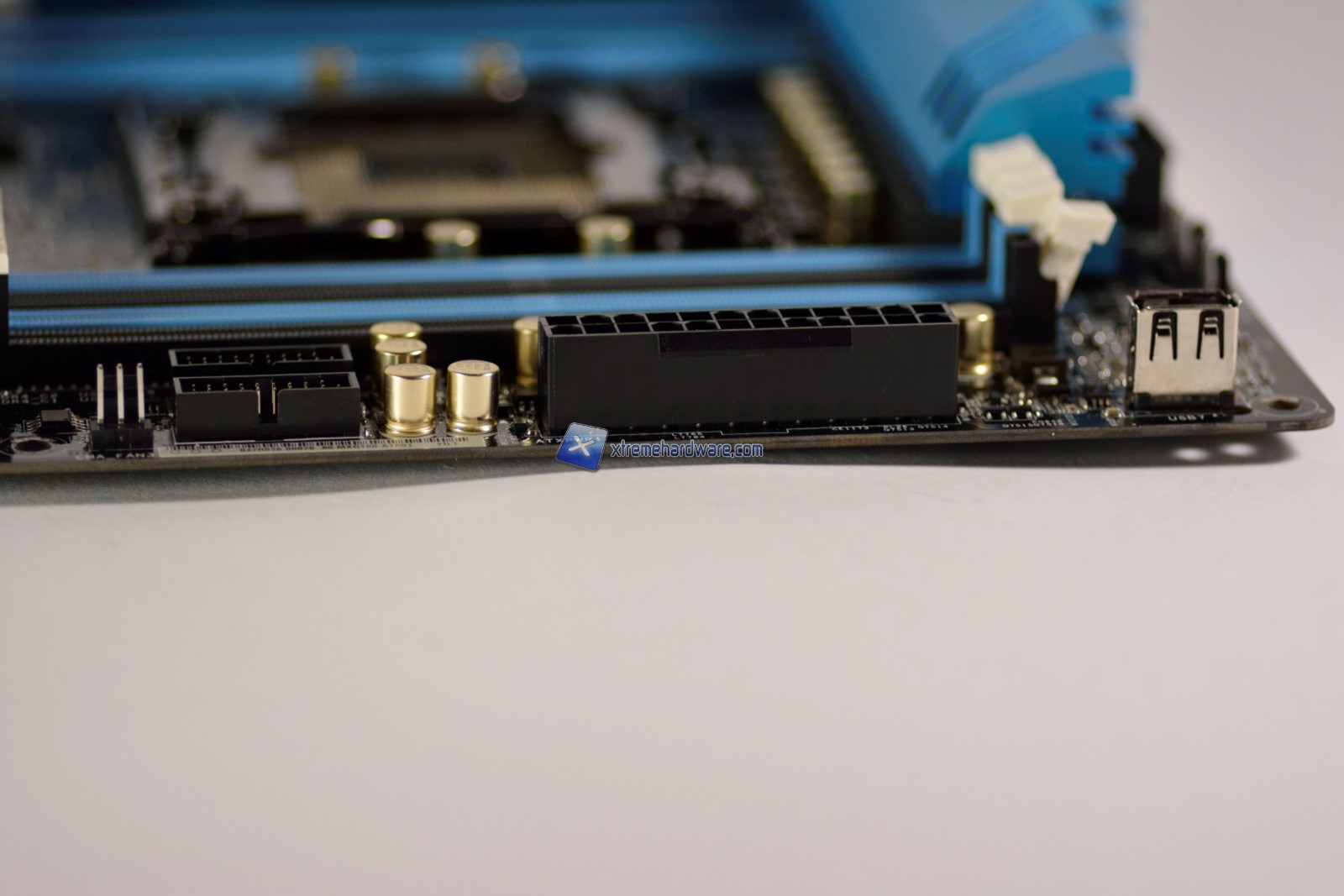 Oltre al classico connettore EATX di alimentazione a 24 PIN abbiamo alla sua sinistra 2 connettori per periferiche USB 3.0 mentre alla sua destra una vera e propria porta USB2.0 che può rivelarsi molto utile per installare internamente periferiche o alimentare altri accessori.
