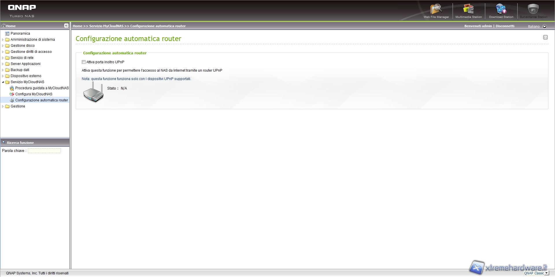 Abilitando la porta di inoltro UPnP sarà possibile accedere al NAS tramite un router UPnP.